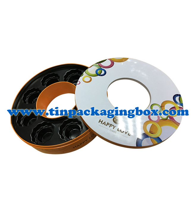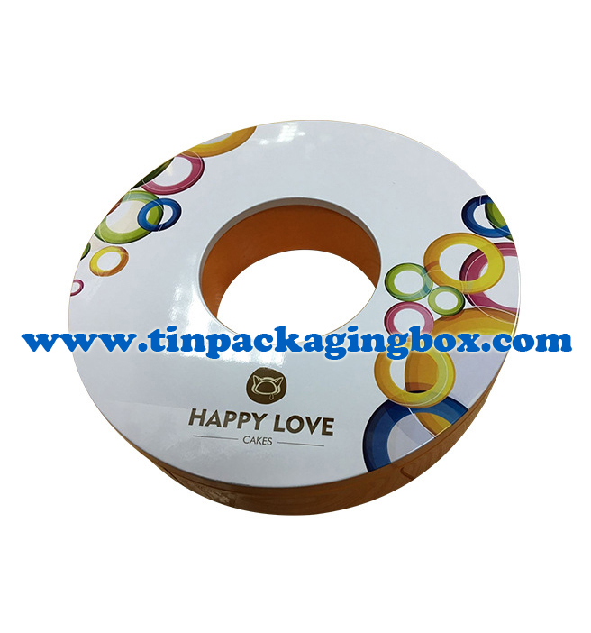 Creative Ring shape cookie tins with PET tray Round tin can with a hole in the center |