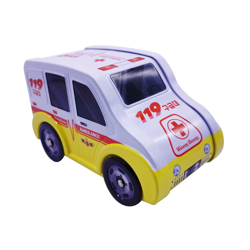 119 Ambulance car tin box with 4 wheels-metal-can