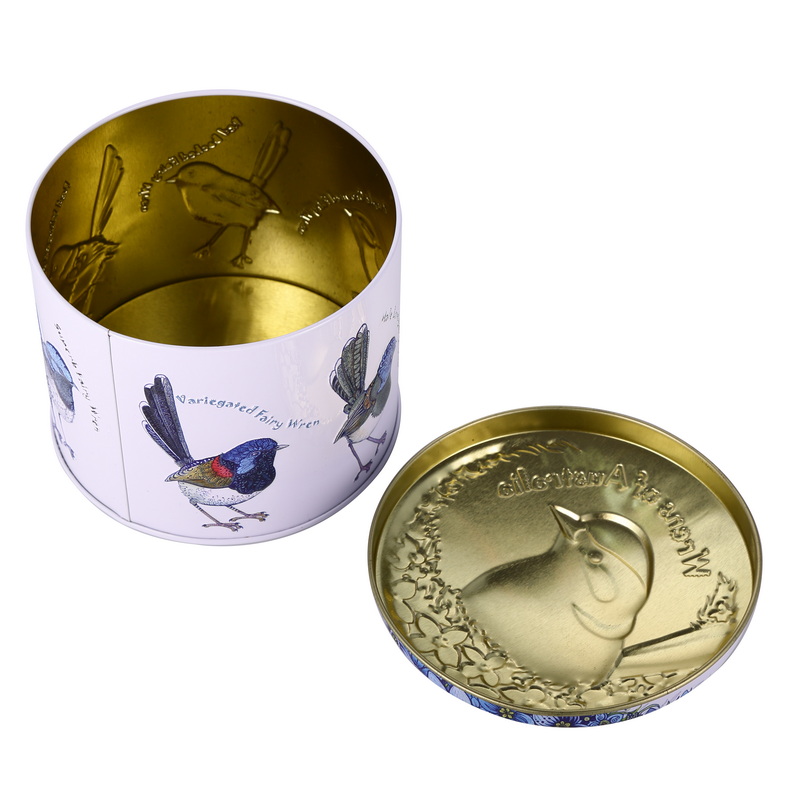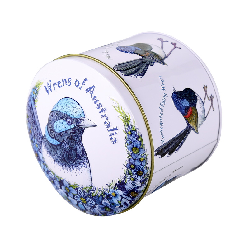 Wrens of Australia Round chocolate tin can with dome lid and embossing birds |