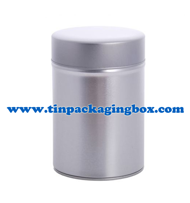 Silver plaind round tea tin box with double lids |