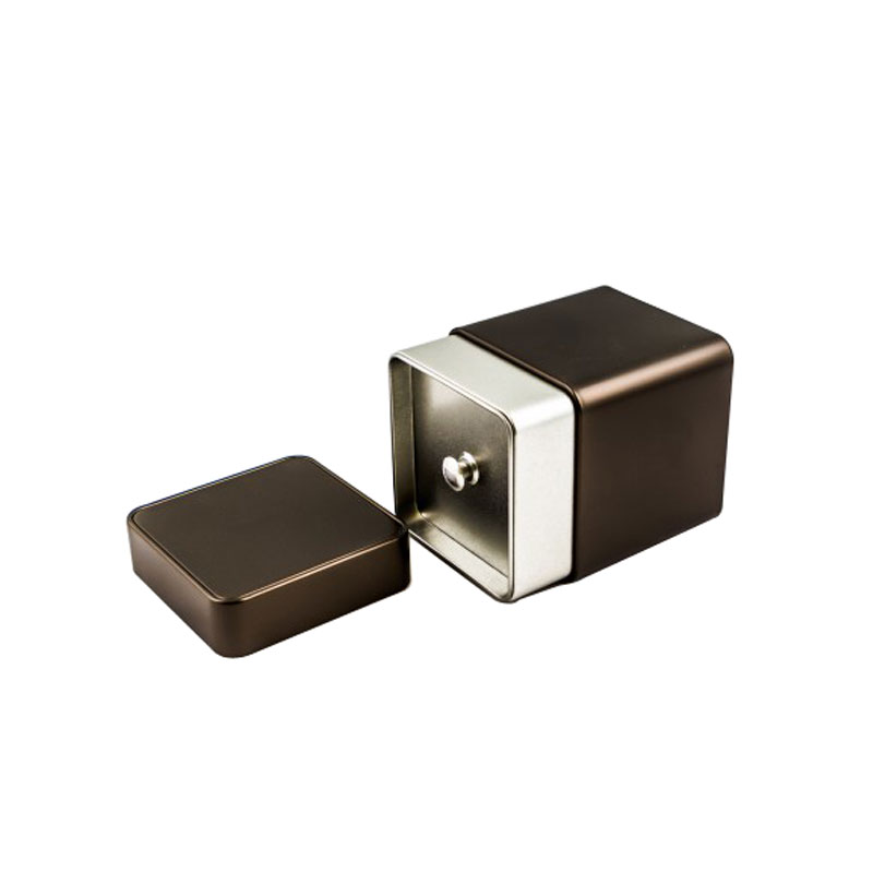 Hot sale Germany High Quality Food Grade square shape tea tin container with tall lid and visible neck |