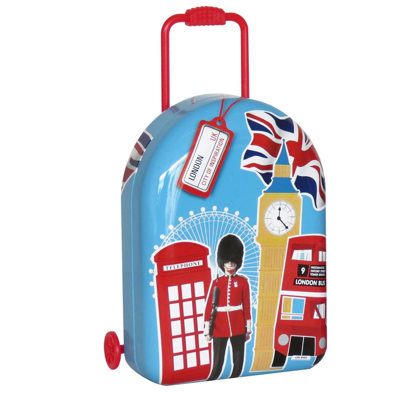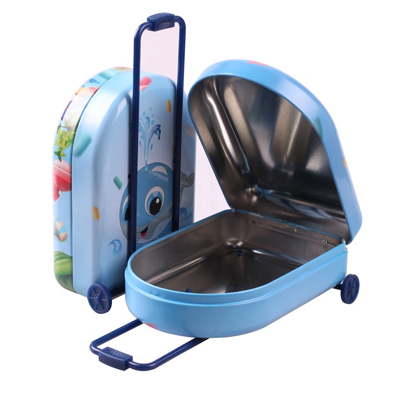 tin trolley box suitcase candy tin packaging box wheelie tin box