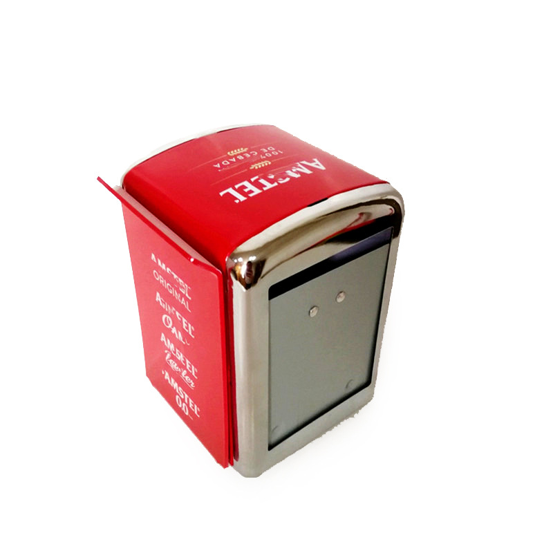 promotional metal tin tissue dispenser box napkin holder with menu holder